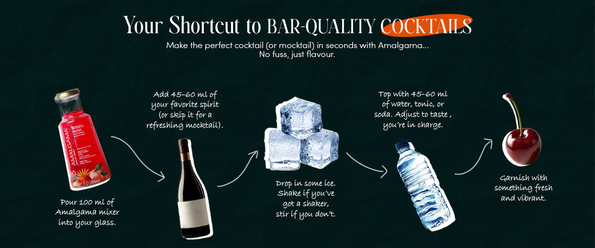 Amalgama’s mixers are guided by one of India’s top mixologists, ensuring a perfect balance of flavor, quality, and innovation. Whether you’re a cocktail enthusiast or a casual sipper, our expertly crafted blends make it easy to enjoy bar-quality drinks anywhere.
