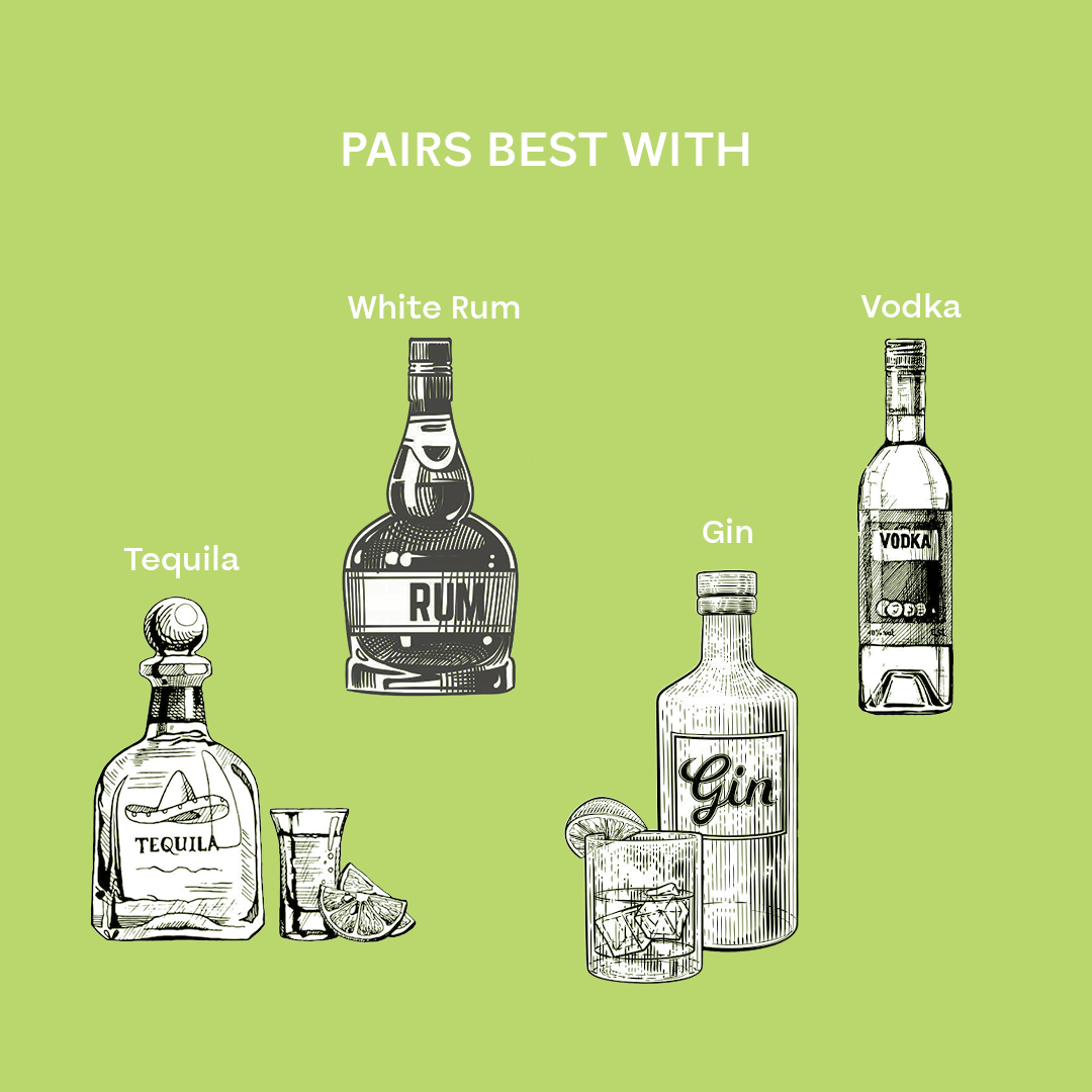 Pairs best with Vodka, Gin, Tequila and White Rum.
